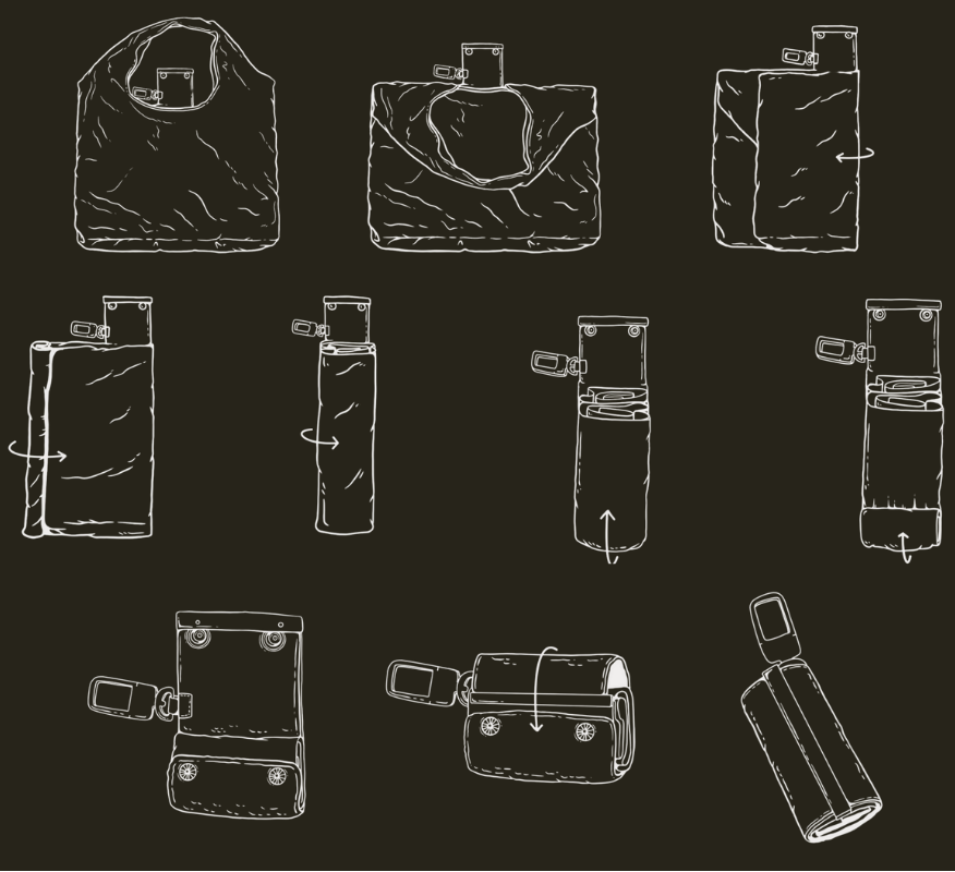 vonalba kerüljön, majd tekerd fel három részben, miközben elsimítod a gyűrődéseket. Végül tekerd szorosan össze, és pattintsd be a zárat.
